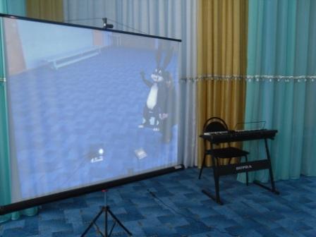 Это новая технология, неизвестная детям, поэтому они воспринимают, как чудо. Интересно было наблюдать, как мои детки раскрывают тайну. Объектом дополненной реальности был выбран зайчик. Первое знакомство с объектом дополненной реальности произошло при проведении утренней зарядки. Детки как обычно были построены на зарядку, зазвучала музыка и вдруг на экране появился объект. Зайчик делал вместе с нами упражнения, дети были очень активны, увлечены персонажем, старались понравиться зайчику.