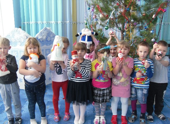 Оборудование: наряженная елка, игрушечные Дед Мороз и Снегурочка, подарок под елкой.